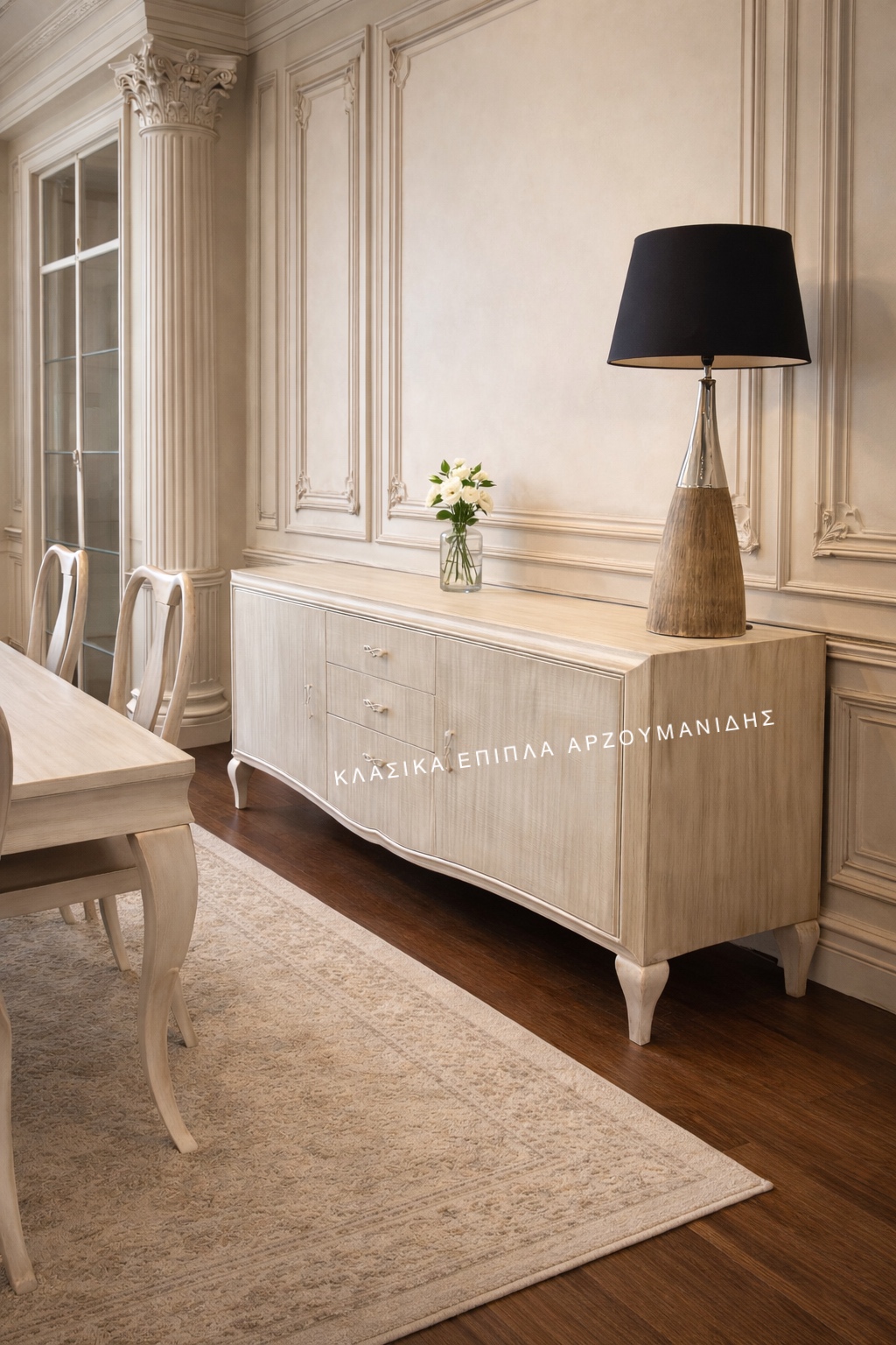 Η κλασική βιτρίνα Lorenzo είναι περισσότερο από ένα έπιπλο: είναι φορέας πολιτισμού. Δημιουργεί έναν διάλογο ανάμεσα στο παρελθόν και το παρόν, μεταφέροντας την ατμόσφαιρα των μεγάλων σαλονιών του παλιού κόσμου στο σύγχρονο ελληνικό σπίτι.