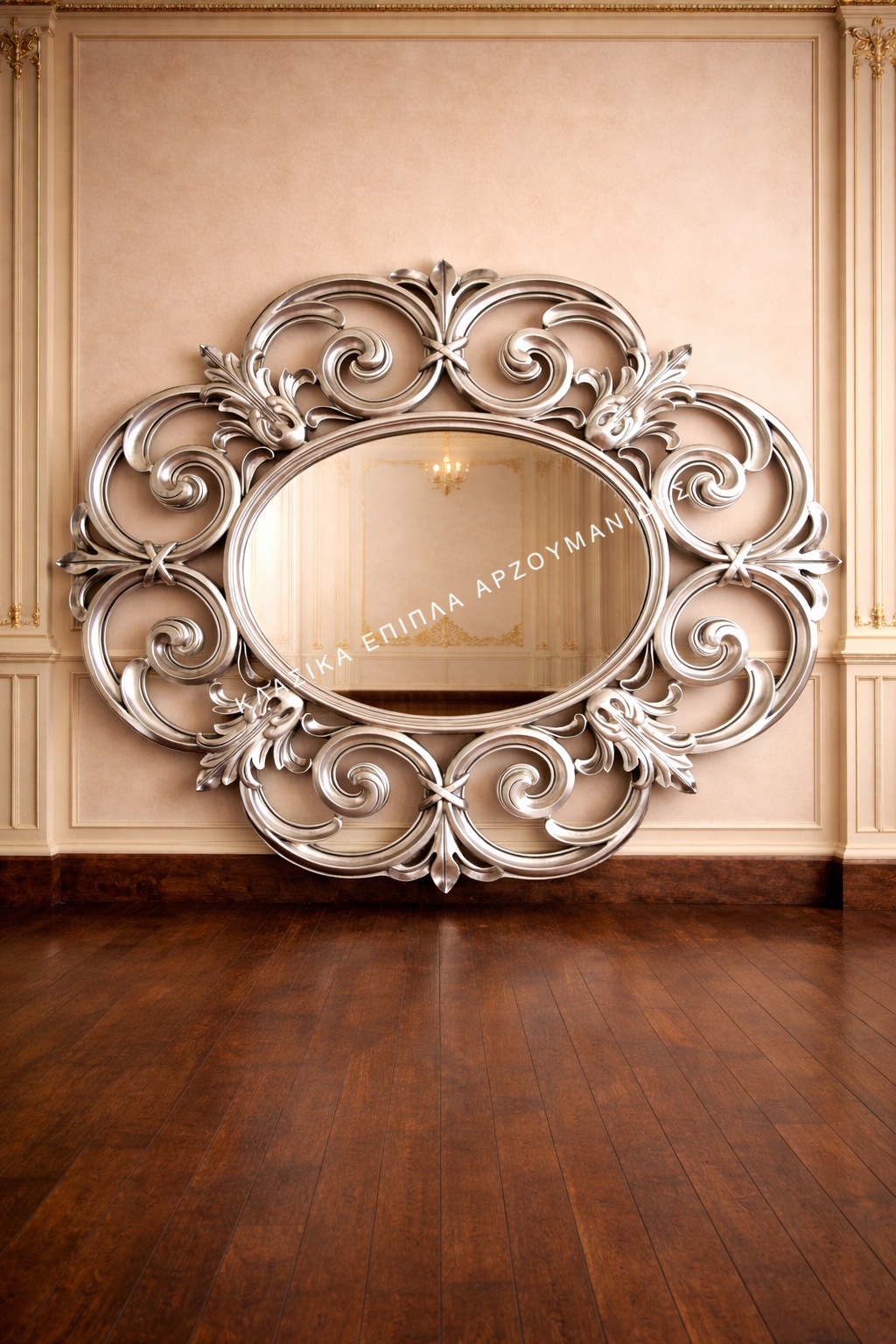 Κλασσικός Καθρέπτης 40090 Σε Σχήμα Οβάλ πατιναριστός με επένδυση από φύλλο ασήμι σε απόχρωση αντικέ παλαιωμένο με πολύ ιδιαίτερα σκαλιστά φύλλα περιμετρικά της κορνίζας. Διακοσμεί ιδανικά κάθε χώρο του σπιτιού είτε μόνος του ώς θέμα είτε επάνω από οποιοδήποτε έπιπλο ώς καθρέπτης. Τοποθετείται οριζόντια και κάθετα.
