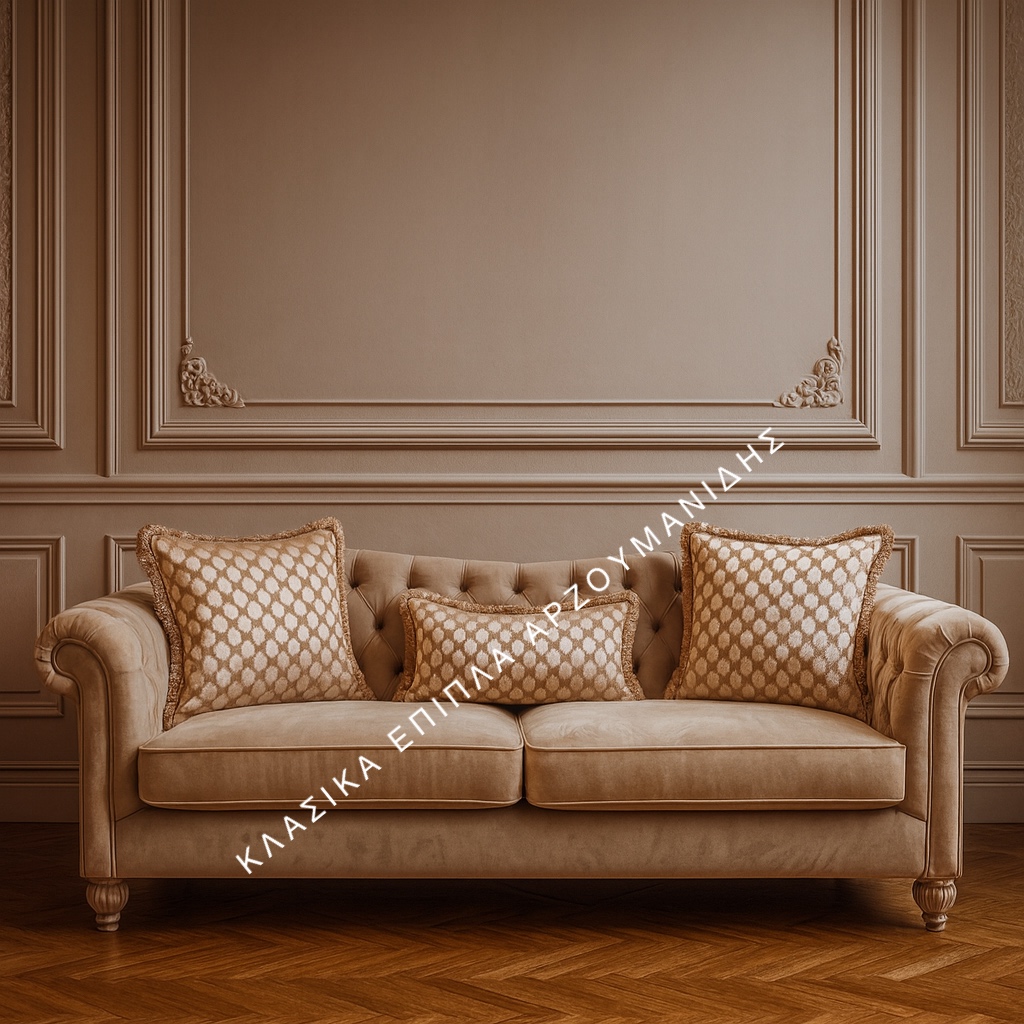 Διατίθεται σε διαστάσεις και υφάσματα της επιλογής σας, ενώ η κατασκευή γίνεται στην Ελλάδα, με γνώση και φροντίδα από έμπειρους τεχνίτες. Χάρη στην ποιότητα των υλικών, το κλασικό σαλόνι αντέχει στον χρόνο και προσφέρει αξεπέραστη άνεση.Ανακαλύψτε το κλασικό σαλόνι Abriana – πολυτελής επιλογή με μοναδικό σχεδιασμό και άνεση. Ιδανικό για κλασικούς χώρους με στυλ και φινέτσα.