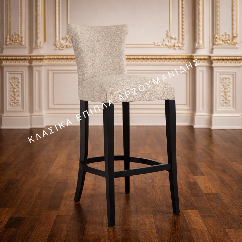 Κλασικό σκαμπό κατασκευασμένο από μασίφ ξύλο οξυάς διαθέσιμο σε πολλά χρώματα και υφάσματα. Μπορεί να κατασκευαστεί και χαμηλότερο