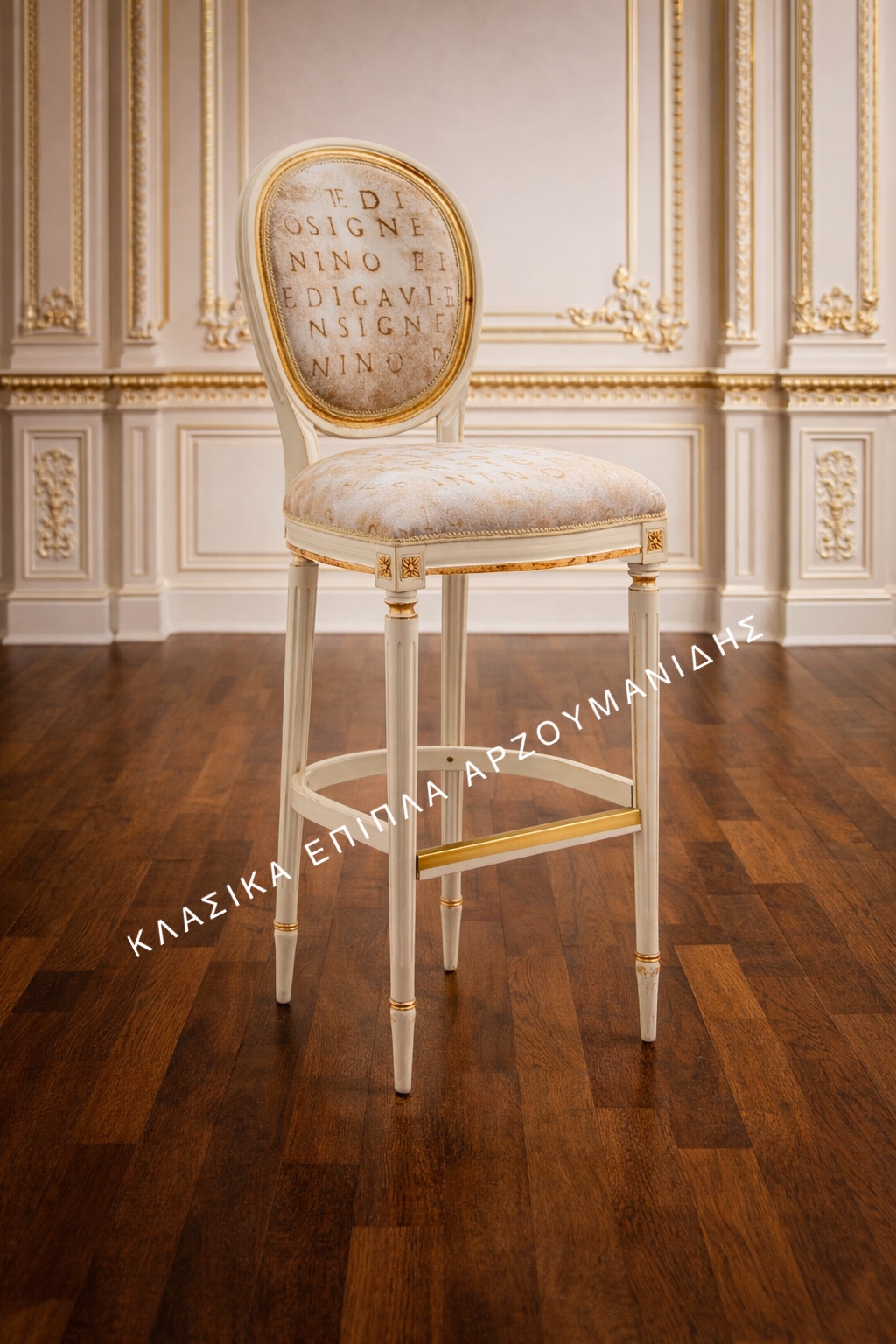 Κλασικό σκαμπό κατασκευασμένο από μασίφ ξύλο οξυάς διαθέσιμο σε πολλά χρώματα και υφάσματα. Το ύψος μπορεί να γίνει χαμηλότερο
